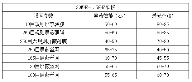 电磁屏蔽丝网透光率越高,屏蔽效能越差;反之,透光率低,则屏蔽效能越高。